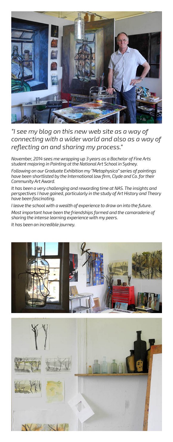 My recent drawing has been focused on integrating figure and landscape motifs. The figures have arisen out of sculptures I made in 2013 based again on Henri Matisse’s work, but this time, his painting Bathers by the River. I am searching for a synthesis of these figures with drawings of tree and branch shapes commenced at Hill End earlier in 2014 that I have since developed in the studio.
