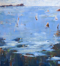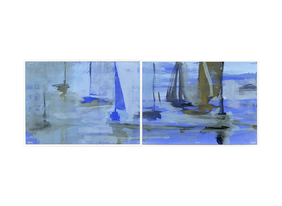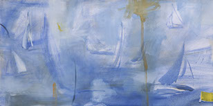 I have experimented with various media including pen and ink, watercolour, gouache and oil on canvas and linen to explore my responses to the experience of being on and around our wonderful waterways, feeling the breeze and watching the dancing reflections of