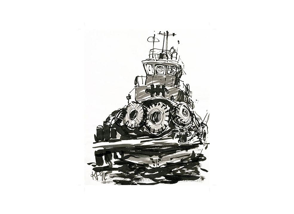 My long association with water and sailing began with my growing up on Middle Harbour. Living in Balmain above the Working Waterfront, restoring a wooden boat and then exploring Sydney Harbour and Pittwater on her has provided a rich source of subject matter for my drawing and painting.